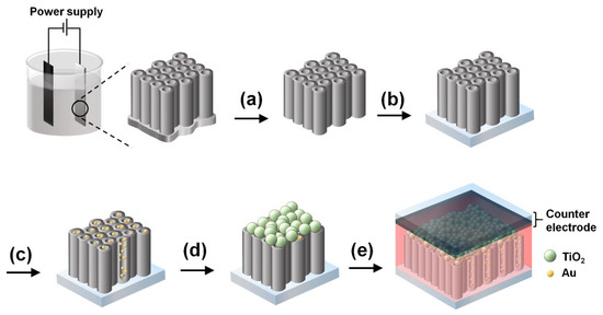38. Rho, W.-Y.; Lee, K.-H.; Han, S.-H.; Kim, H.-Y.; Jun, B.-H. Au-embedded and carbon-doped freestanding TiO2 nanotube arrays in dye-sensitized solar cells for better energy conversion efficiency. Micromachines 2019, 10, 805. [Google Scholar] [CrossRef]