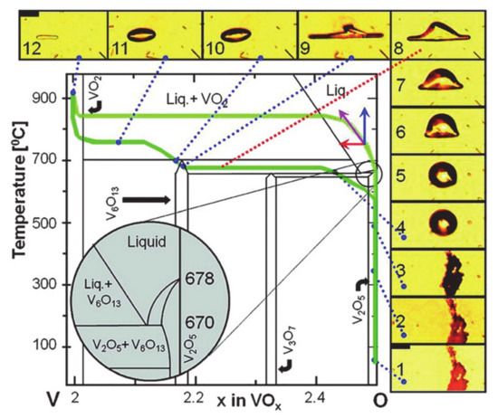 V–O temperature-composition phase diagram. Reproduced from [78], with permission from American Chemical Society, 2011.