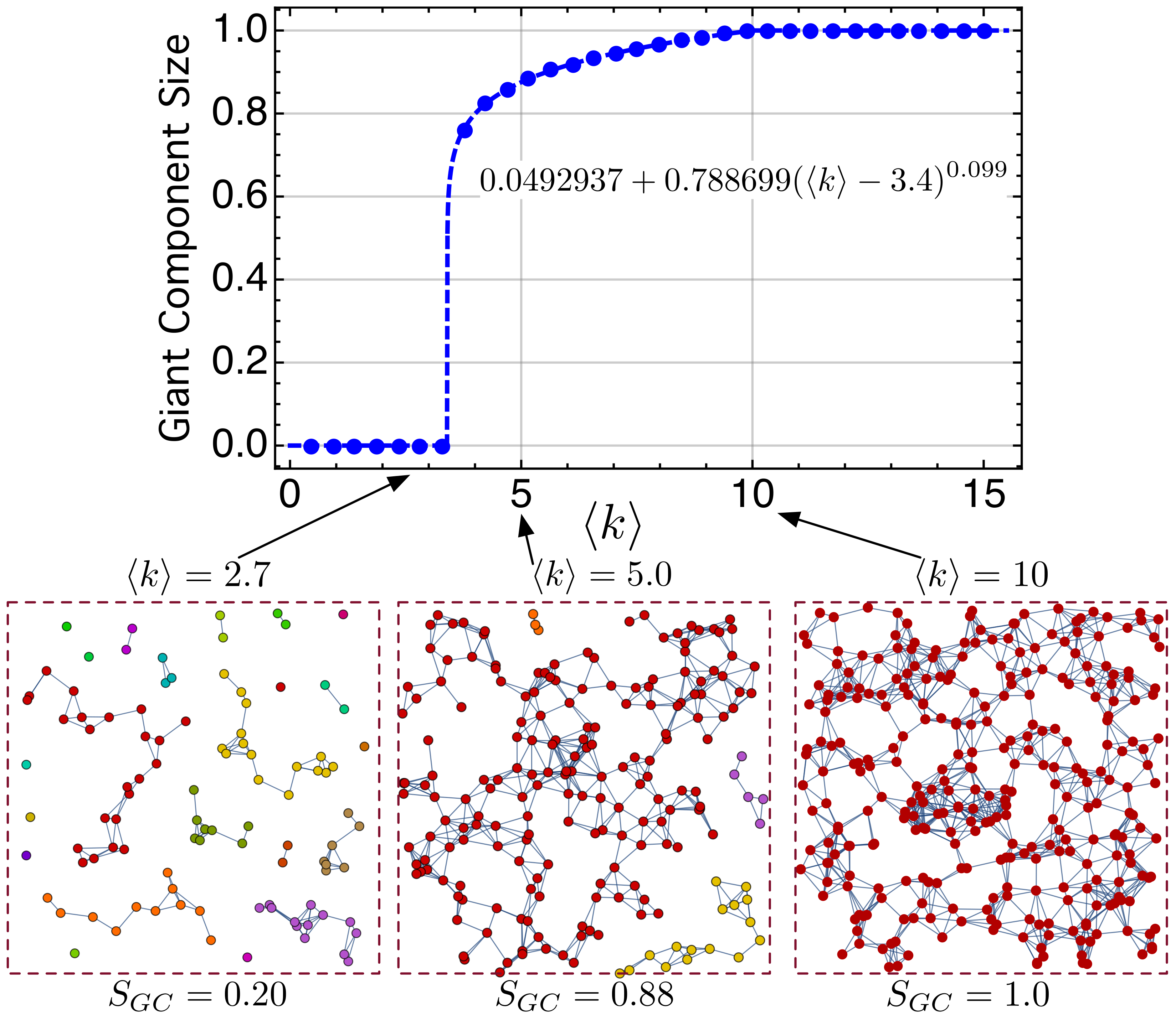 | normalized size of the giant component (GC) with respect to the total number of nodes N. | |