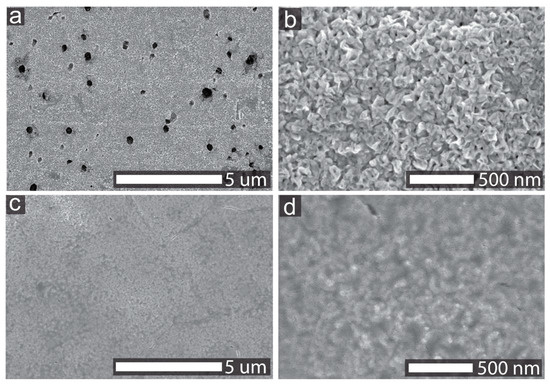 SEM images of NF/NiO (a,b) and Ni95Ce5Ox (c,d) samples.