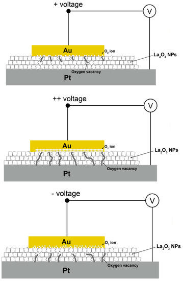 2− ions were migrated from the interface of the Au electrode into the LaO