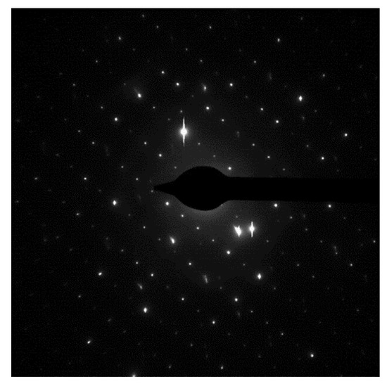 The diffraction pattern of a beam of electrons passing through the examined sample points that the synthesized β-Ga2O3 nanowires are monocrystalline (Figure 8).