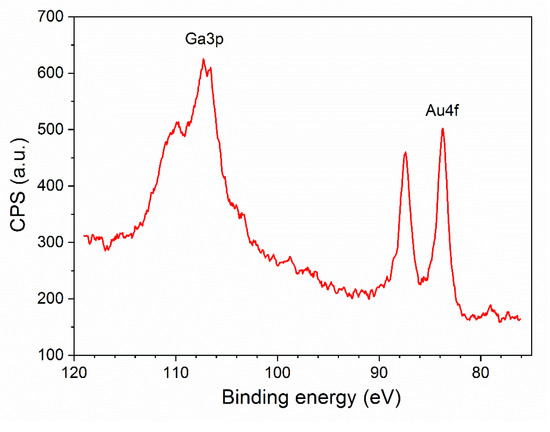 The surface chemical composition of the synthesized structures has been investigated with X-ray Photoelectron Spectroscopy (XPS). The non-monochromatized X-ray source based on Mg anode lamp (Mg Kα emission line) was used. High-resolution photoelectron energy spectra were recorded with AES/XPS system EA10 (Leybold-Heraeus GmbH, Cologne, Germany). Pressure in the chamber during the measurements was less than mbar. All acquired spectra were calibrated to adventitious carbon C1s at 285 eV. The overall resolution of the spectrometer during the measurements was 0.96 eV as a full width of half maximum (FWHM) of the Ag3d5/2 line. CasaXPS software version 2.3 (Casa Software Ltd., Teignmouth, UK) was used for data deconvolution. The concentration of atoms in the sample was determined on the basis of XPS spectra analysis, taking into account the presence of individual elements O, C, Au and Ga.