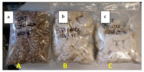 Consecutive mechanical treatments of CFT cotton waste: (A–C).