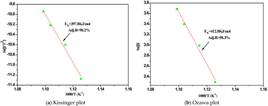 Here, the β is the heating rates, T represents the specific temperature Tx, E is the corresponding activation energy Ex and R is the gas constant.