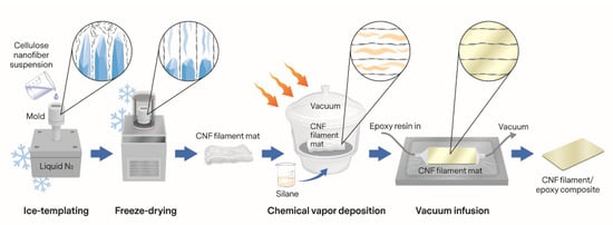 - Nissilä, T.; Hietala, M.; Oksman, K. A Method for Preparing Epoxy-Cellulose Nanofiber Composites with an Oriented Structure. Compos. Part A 2019, 125, 105515. [Google Scholar] [CrossRef]