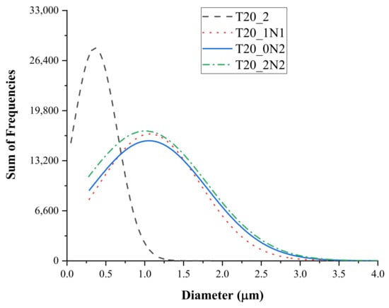 Normal diameter distribution of non-functionalized and functionalized nanofibers fabricated with different concentrations of laser-ablated TiN NPs.