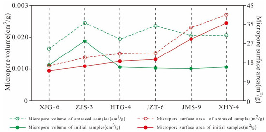Micropore SA and PV variation characteristics of the original shale and its corresponding extracted samples.