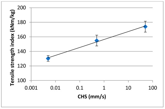 Figure 1. The effect of cross-head speed on the tensile strength of a nanocellulose film.