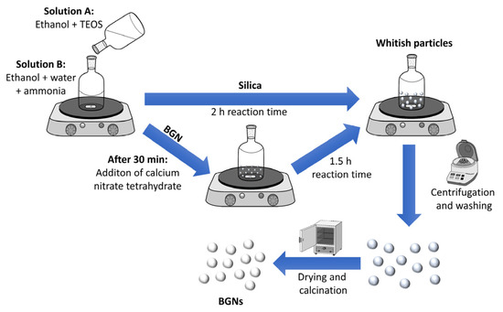 Schematic illustration of the synthesis route for bioactive glass nanoparticles (BGNs).