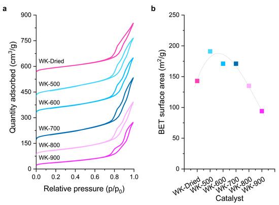 3.1. Effect of Thermal Treatment on Wet-Kneaded SiO2–MgO Catalyst