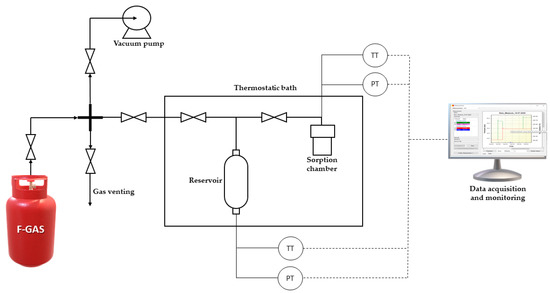 Therefore, the number of sorbed moles of F-gas in each equilibrium step (Equation (5)) is calculated as the difference between the gas moles initially loaded in the reservoir and the remaining (not absorbed) after reaching equilibrium: