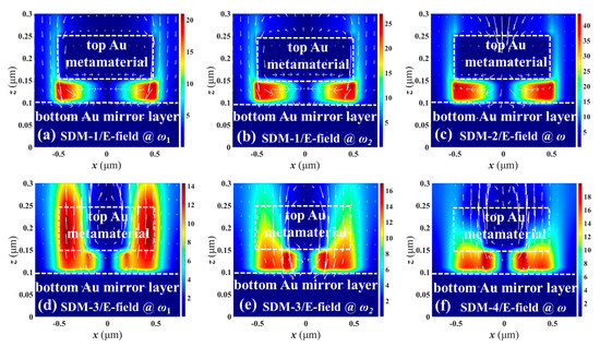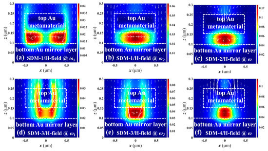 - Tang, C.; Zhan, P.; Cao, Z.; Pan, J.; Chen, Z.; Wang, Z. Magnetic field enhancement at optical frequencies through diffraction coupling of magnetic plasmon resonances in metamaterials. Phys. Rev. B 2011, 83, 041402. [Google Scholar] [CrossRef]