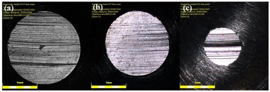 Wear-scar diameter of pins at 15 N for samples tested with (a) neat oil, (b) 0.10 vol.% nanolubricant, and (c) 0.30 vol.% nanolubricant.