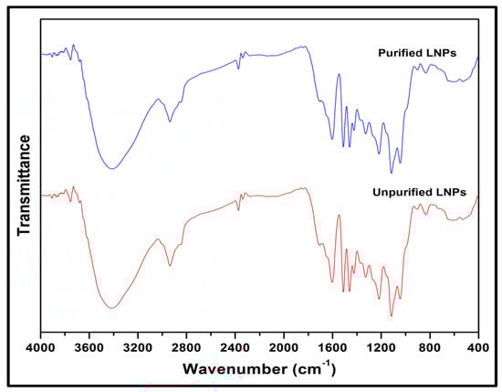 FT-IR spectra of unpurified LNPs and purified LNPs.