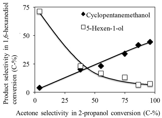 - Akashi, T.; Sato, S.; Takahashi, R.; Sodesawa, T.; Inui, K. Catalytic vapor-phase cyclization of 1,6-hexanediol into cyclopentanone. Catal. Commun. 2003, 4, 411–416. [Google Scholar] [CrossRef]