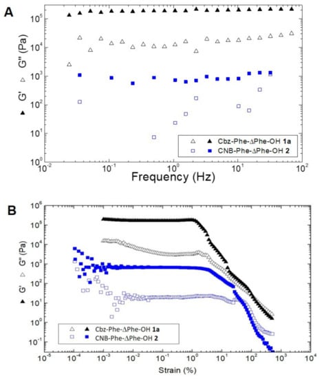 3.6. Rheological Study of CNB-Phe-ΔPhe-OH (2) and Comparison with Cbz-Phe-ΔPhe-OH (1a)