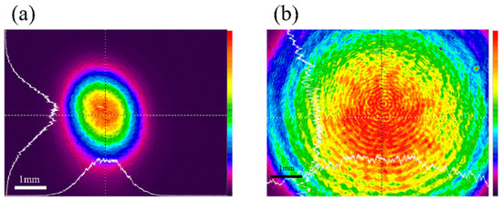 (a)The profile of the femtosecond laser beam before passing an aperture diaphragm; (b) the profile of the femtosecond laser beam after passing an aperture diaphragm.