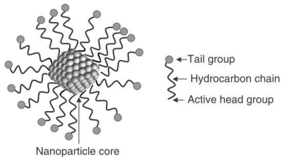 Schematic of a nanoparticle, showing the core and the shell [4].