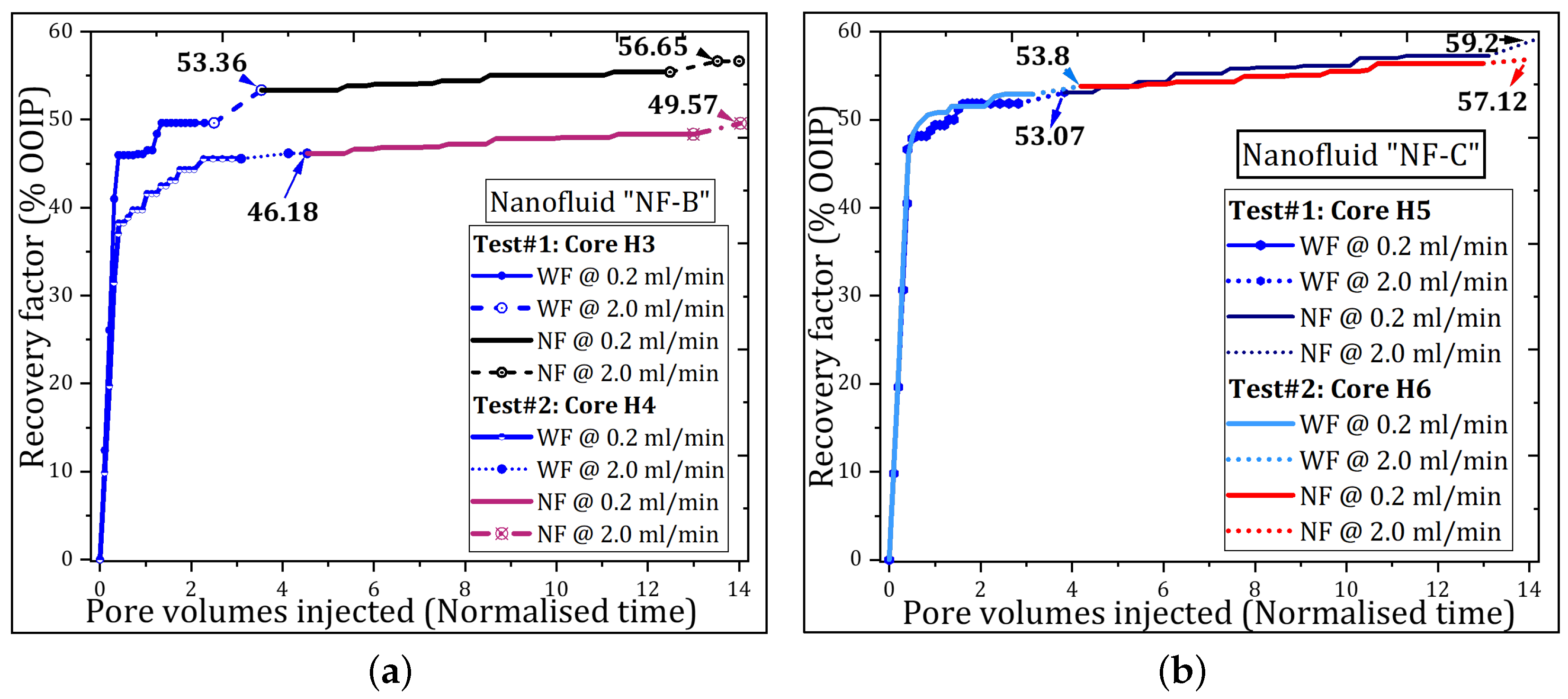 - Suleimanov, B.A.; Ismailov, F.; Veliyev, E. Nanofluid for enhanced oil recovery. J. Pet. Sci. Eng. 2011, 78, 431–437. [Google Scholar] [CrossRef]