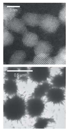 Aging of ceria nanoparticles (NPs). Different holistic properties of young (upper) and aged (lower) ceria NPs after being released into the environment. Reprinted with permission from ref. [57]. Copyright, 2015, The American Association for the Advancement of Science.