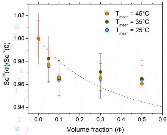 The normalized as a function of NP concentration at the cell mean temperature Tmean = 25 °C, 35 °C, and 45 °C is shown in Figure 2. behaved similarly at all three temperatures, i.e., the addition of NPs resulted in a slight reduction of the Seini coefficient by approximately 4% at Φ = 0.5% vol.
