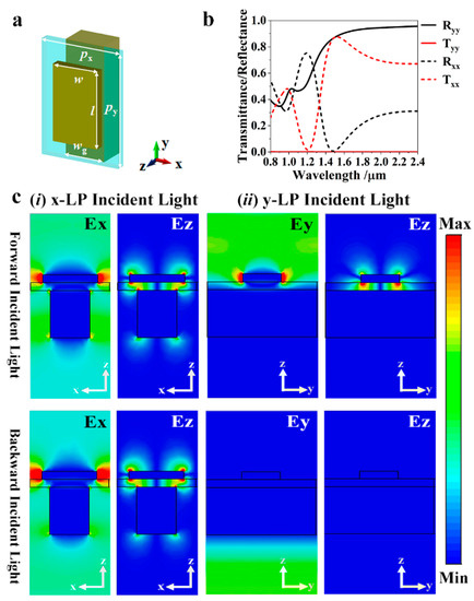 The following are available online at https://www.mdpi.com/article/10.3390/nano11041034/s1, Figure S1: Simulated reflectance of (a) y-LP incident light and (b) transmittance spectra of x-LP incident light of the unit cells.