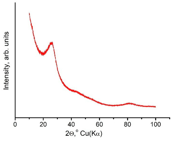 The spherical modification of carbon nitride was obtained when added to a reactor, as a substrate, with nano-size silica spheres, using the procedure described previously [20]. The X-ray diffraction pattern of the starting g-C3N4 material is shown in Figure 1. The initial graphite-like g-C3N4 is a partially three-dimensional ordered structure, with the following parameters: a = 0.2370 ± 0.0005 nm and c = 0.686 ± 0.025 nm, which corresponds to the C-N bond length equal to L = 0.137 nm. This corresponds to the known data described inthe literature [4,5,19,21].