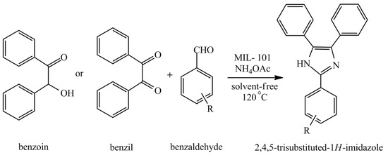 Manteghi F, Zakeri F, Guy OJ, Tehrani Z. MIL-101(Cr), an Efficient Heterogeneous Catalyst for One Pot Synthesis of 2,4,5-tri Substituted Imidazoles under Solvent Free Conditions. Nanomaterials. 2021; 11(4):845. https://doi.org/10.3390/nano11040845