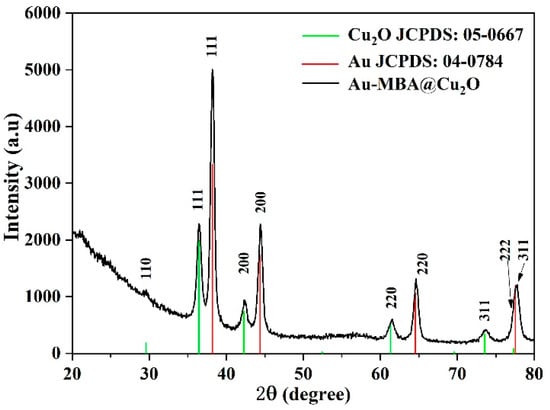 XRD pattern of the Au NR–MBA@Cu2O (L/D = 2.78) sample.