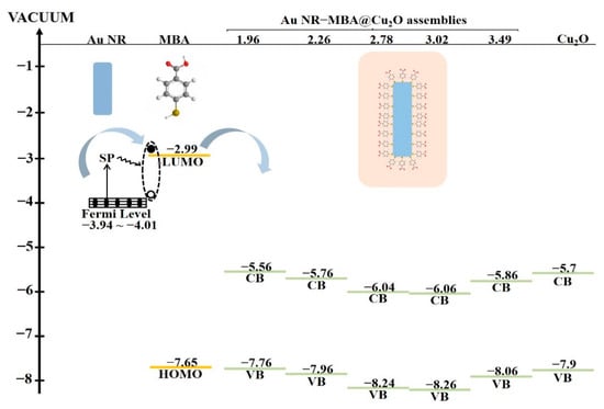 Energy level of Au NRs, MBA, Cu2O, and Au NR–MBA@Cu2O with different L/Ds.