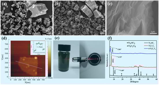 - Naguib, M.; Kurtoglu, M.; Presser, V.; Lu, J.; Niu, J.; Heon, M.; Hultman, L.; Gogotsi, Y.; Barsoum, M.W. Two-dimensional nanocrystals produced by exfoliation of Ti3AlC2. Adv. Mater. 2011, 23, 4248–4253. [Google Scholar] [CrossRef] [PubMed]