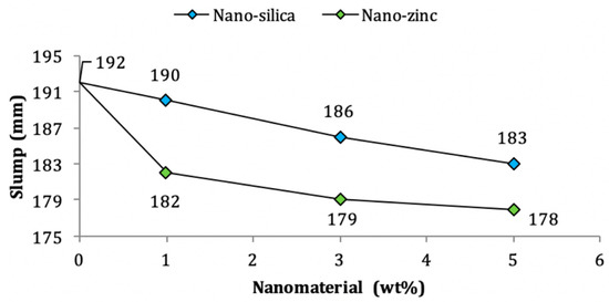 Likewise, as indicated in Table 4, addition of nano-alumina and nano-zinc reduces the workability of the mortar mix as they have small particle size and more surface area [109,119].