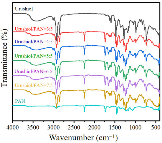 3.1. Effects of Urushiol/PAN Ratio on Fiber Morphology