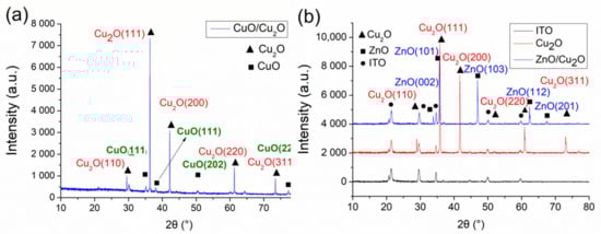 XRD patterns of (a) CuO/Cu2O and (b) fabricated ZnO/Cu2O heterostructure.