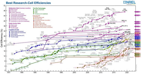 - Research Cell Efficiency Records. Available online: https://www.nrel.gov/pv/assets/pdfs/best-research-cell-efficiencies.20200104.pdf (accessed on 11 January 2021).