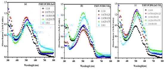 | ITO/ZnO/P3HT:PCBM:ZnO:TiO2/MoO3/Ag | Inverted | 3.03 | 2.69 | |||