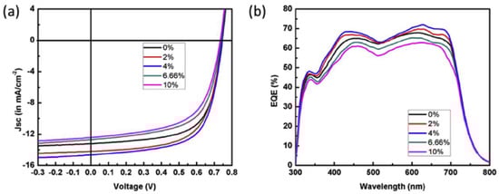 - Chuang, H.-Y.; Lin, S.-W.; Hsu, S.L.-C. Efficiency enhancement of P3HT:PC61BM bulk heterojunction solar cells by doping with a small molecule dye. Thin Solid Films 2016, 603, 317–322. [Google Scholar] [CrossRef]