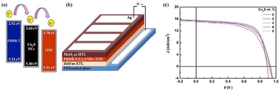| ITO/ZnO/PTB7-Th:Cu2S:PCBM/MoO3/Ag | Inverted | AL | 8.2 | 6.96 | 2019 | [225] |