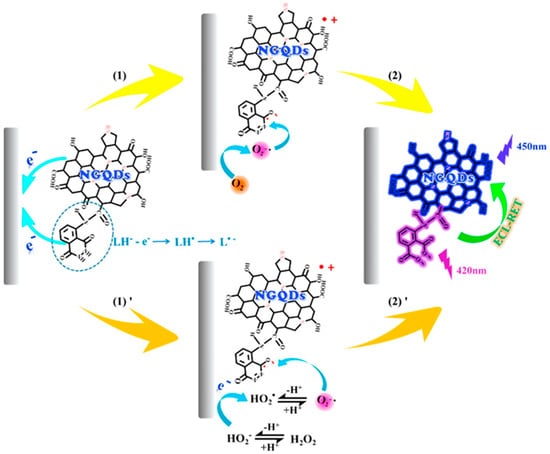ECL-RET mechanism of luminol-NGQDs in H2O2 detection in water samples. Adapted with the permission of Ref. [119].