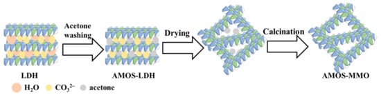 The schematic diagram of synthesis of AMOS-LDH and AMOS-MMO (adapted [61] with permission from Elsevier, 2019).