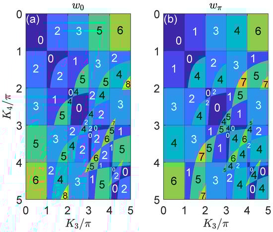 Using these winding numbers, we can further construct two pairs of invariants and for the Floquet subsystems described by and , respectively [124,125]. They are related to the values of through the relations