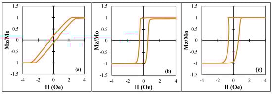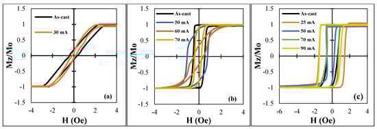 Hysteresis loops for all the samples after DC current annealing with different Ian for 30 min: (a) −1, (b) −2, and (c) −3.