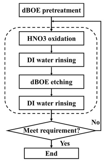 - Li, C.; Zhu, H.; Zhang, Y.; Yin, X.; Jia, K.; Li, J.; Wang, G.; Kong, Z.; Du, A.; Yang, T.; et al. Selective Digital Etching of Silicon-Germanium Using Nitric and Hydrofluoric Acids. ACS Appl. Mater. Interfaces 2020, 12, 48170–48178. [Google Scholar] [CrossRef]