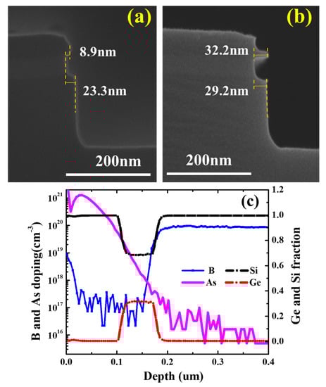 3.3. Effect of Doped SiGe and Ge Fraction Dependence
