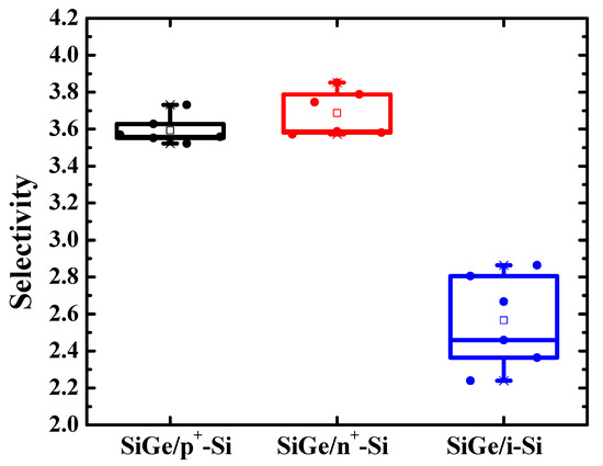 - Ahles, C.F.; Choi, J.Y.; Wolf, S.; Kummel, A.C. Selective Etching of Silicon in Preference to Germanium and Si0.5Ge0.5. ACS Appl. Mater. Interfaces 2017, 9, 20947–20954. [Google Scholar] [CrossRef] [PubMed]