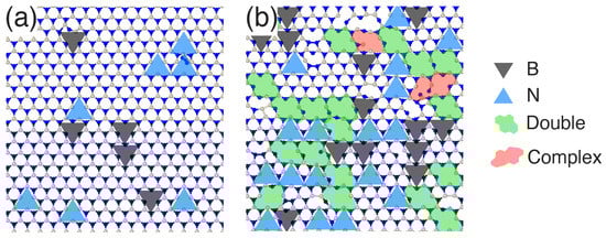 - Albe, K.; Möller, W. Modelling of boron nitride: Atomic scale simulations on thin film growth. Comput. Mater. Sci. 1998, 10, 111–115. [Google Scholar] [CrossRef]