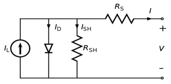The shunt resistance (RSH) is due to electron-hole recombination; in the shunt, resistance passes the shunt current (ISH); the series resistance (RS) is due to conductivity and connection wire imperfection. Consequently, output current (I) of the photovoltaic cell’s can be described as follow []: