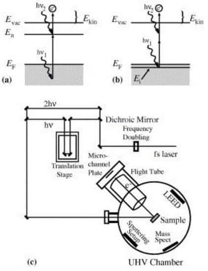 - Mathias, S.; Wiesenmayer, M.; Deicke, F.; Ruffing, A.; Miaja-Avila, L.; Murnane, M.M.; Kapteyn, H.C.; Bauer, M.; Aeschlimann, M. Time and angle resolved photoemission spectroscopy using femtosecond visible and high-harmonic light. J. Phys. Conf. Ser. 2009, 148, 012042. [Google Scholar] [CrossRef]