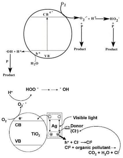- Boxi, S.S.; Paria, S. Visible light induced enhanced photocatalytic degradation of organic pollutants in aqueous media using Ag doped hollow TiO2 nanospheres. RSC Adv. 2015, 5, 37657–37668. [Google Scholar] [CrossRef]